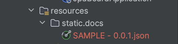 // /static/docs/SAMPLE - 0.0.1.json 생성 → jar 파일만 배포할 예정이기에 build 에 출력
